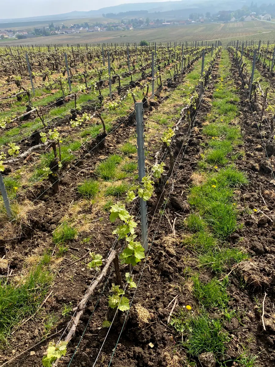 L’observation requiert de l’expérience et de l’expertise pour interpréter ses signaux. Chaque parcelle est considérée comme un être unique, elle reçoit le soin qui lui est propre selon son âge, son exposition, sa vigueur, la vie de son sol… La protection de la nature et la biodiversité est au cœur de nos préoccupations pour transmettre une Terre saine aux futures générations… Pour garder de vieilles vignes, il faut les soigner. La taille est stricte et rigoureuse pour limiter les rendements et assurer la concentration aromatique dans les raisins (Taille Cordon de Royat pour les Meuniers et Pinots noirs, taille Chablis pour les Chardonnays). La taille en Premiers et Grands Crus est chronophage et technique afin de limiter la quantité de grappes et assurer la richesse aromatique des baies. Le liage est précis pour guider la liane et assurer une bonne aération de la végétation à venir.